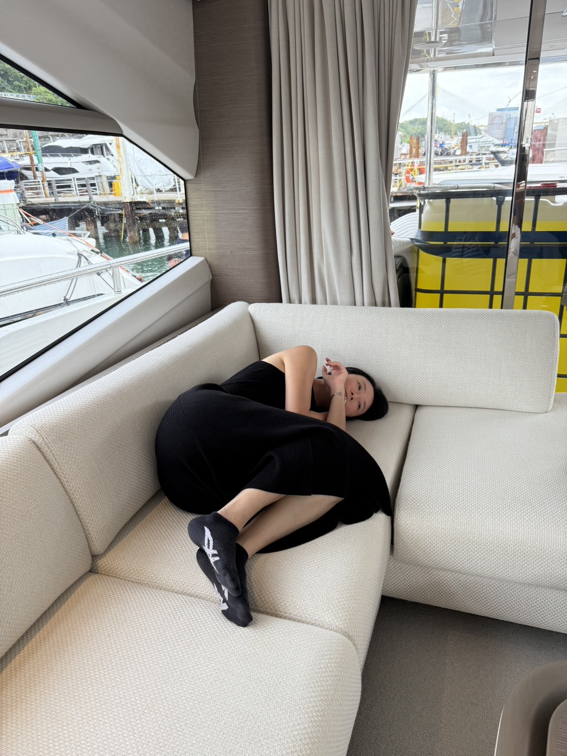 通常浪高一米左右搭遊艇就已經有點不舒服,遑論三米浪航行,其實除了死命黏在沙發上,其他大部分的事情都不能做,深怕動作過大想吐或跌倒受傷。要用洗手間就是更大的挑戰了,要以正常的姿勢在這種環境中行走困難度90%,好不容易到了廁所還得想辦法穩穩坐在馬桶上,所有動作都無法一步到位…就這樣進入了深夜,午夜以後的天氣又更差,航行難度直接翻倍,黏在沙發上的我們(aka兩咖沒甚麼用的行李),其實心裡超難受,一邊控制自己不要吐,一邊努力睡著,最重要的是把心理的不安強壓下去,此時的我們心裡一直吶喊:「到底為什麼要跟船!!!」