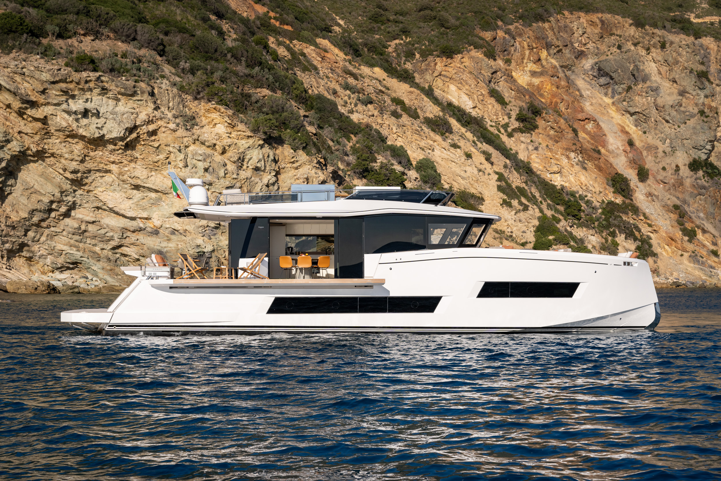 憑藉創新的 eco-speed 參數設定,E72 在寬敞空間、效率表現、低噪音運轉與低油耗之間取得完美平衡。同時,秉持對永續航行的承諾,E72 亦可配置混合動力系統,為未來航行指引更環保的方向。無論每一段旅程,E72 皆以無與倫比的舒適度與鮮明優雅的風格,於戶外與室內空間中全面展現;其空間配置最大化利用體積與尺度,設計細節亦可充分體現船主的個人品味。