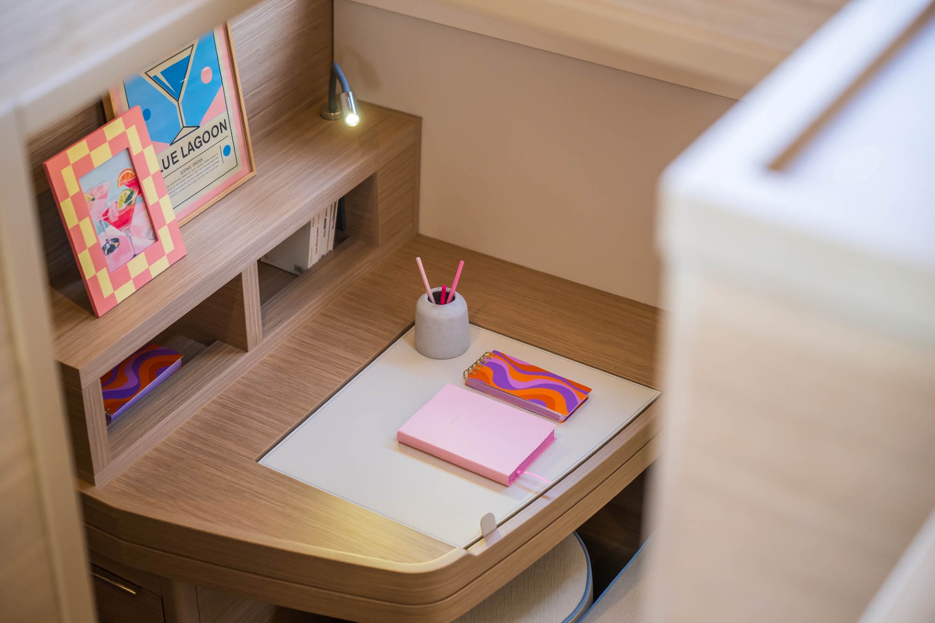 This new lounge space features more sun pads and a safe new access to the sea, with a forward swim ladder, ensuring beautiful anchorages to come.