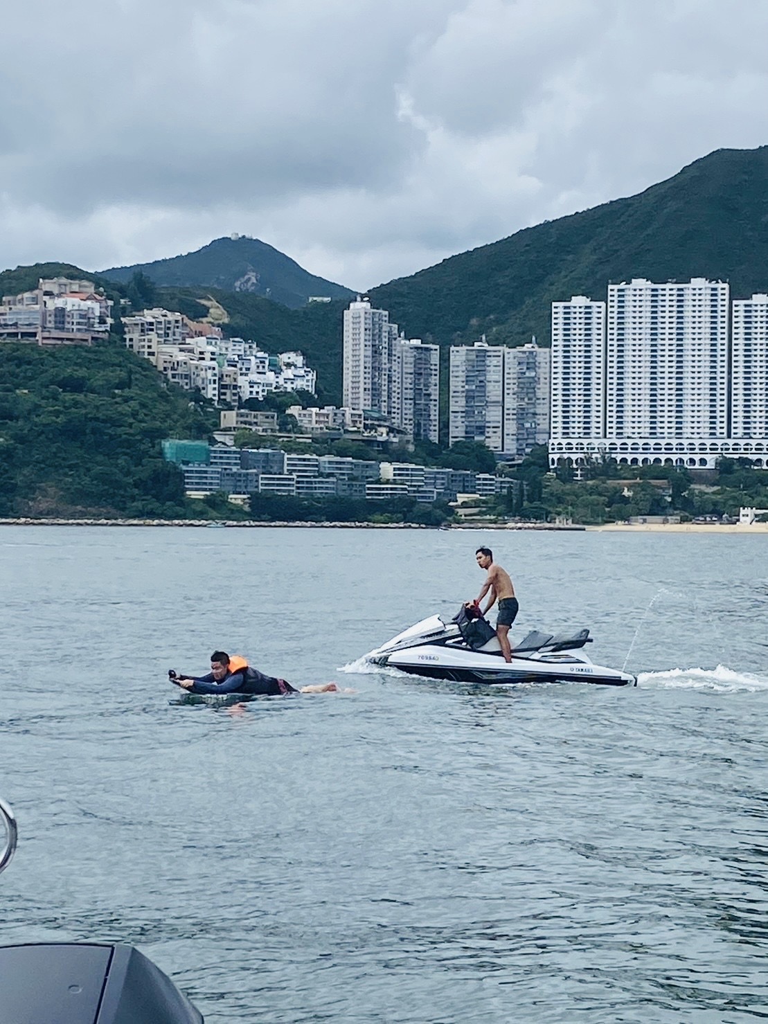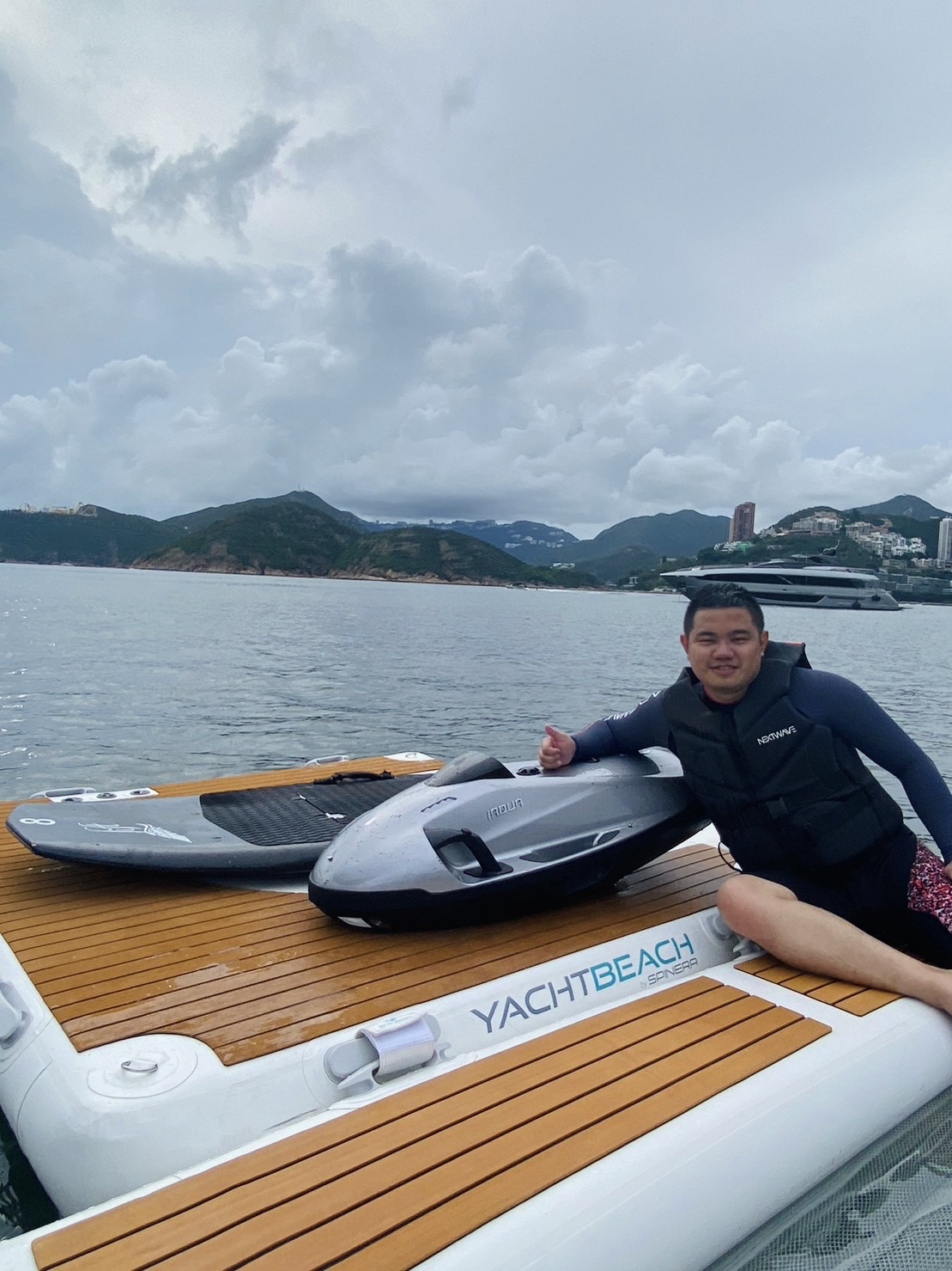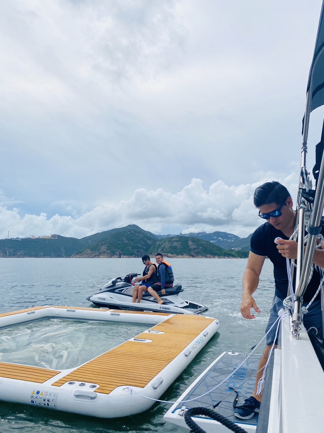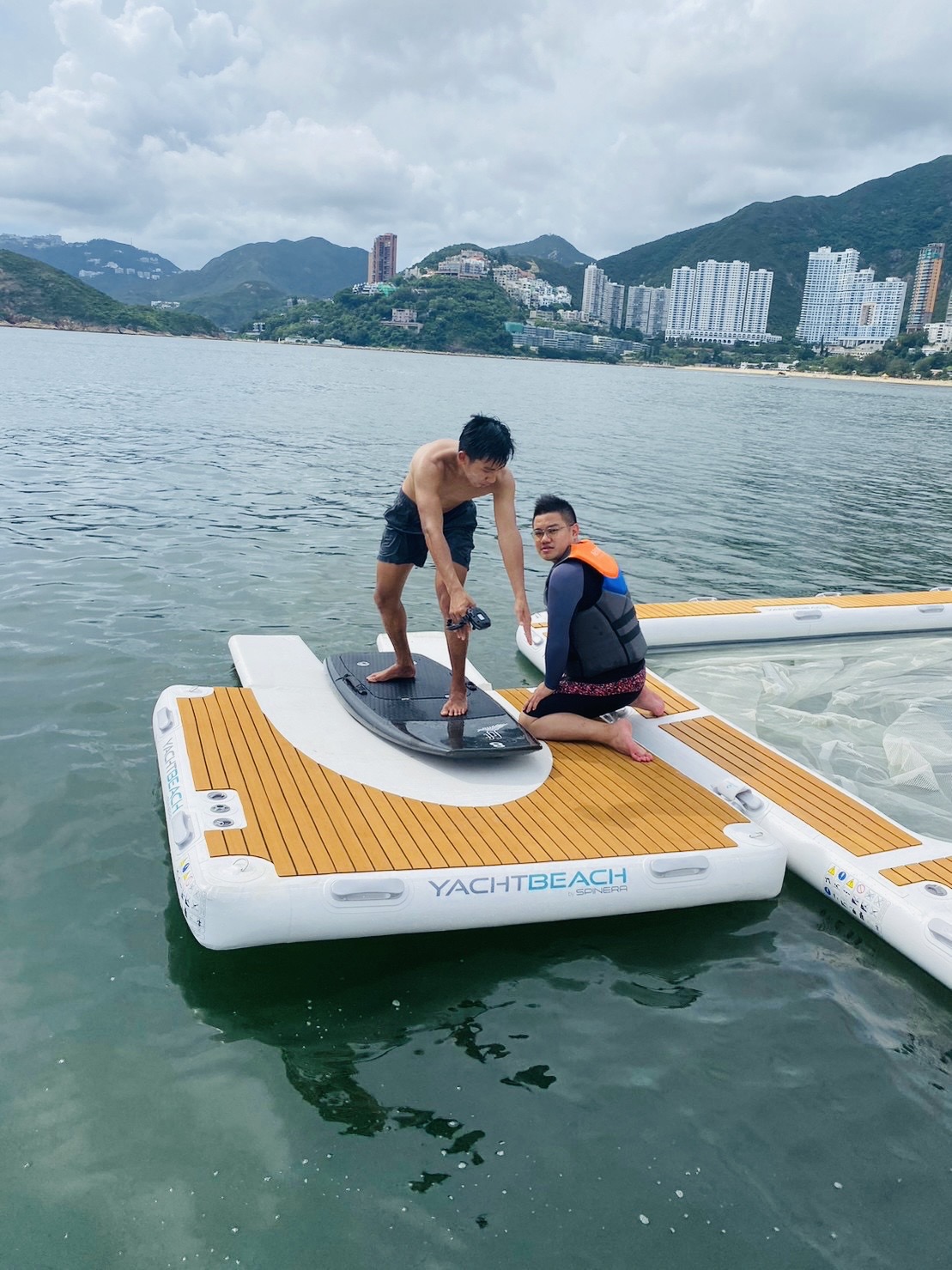 亞平小隊在2023夏天前往香港,有幸搭乘夥伴的28呎快艇在淺水灣玩水上玩具,度過一個美好的下午(幸好也沒甚麼太陽)。其實網路上查詢會發現有很多海上玩具的製造商,真的很多花樣,會讓人眼睛花掉的那種。我們那次玩的是簡易版本,就是很簡單把器材放到船上,開到錨泊點,然後充氣下水,將兩片玩具拼接在一起,就大功告成,整個過程花不到半小時,所以其實沒有看起來這麼搞剛。