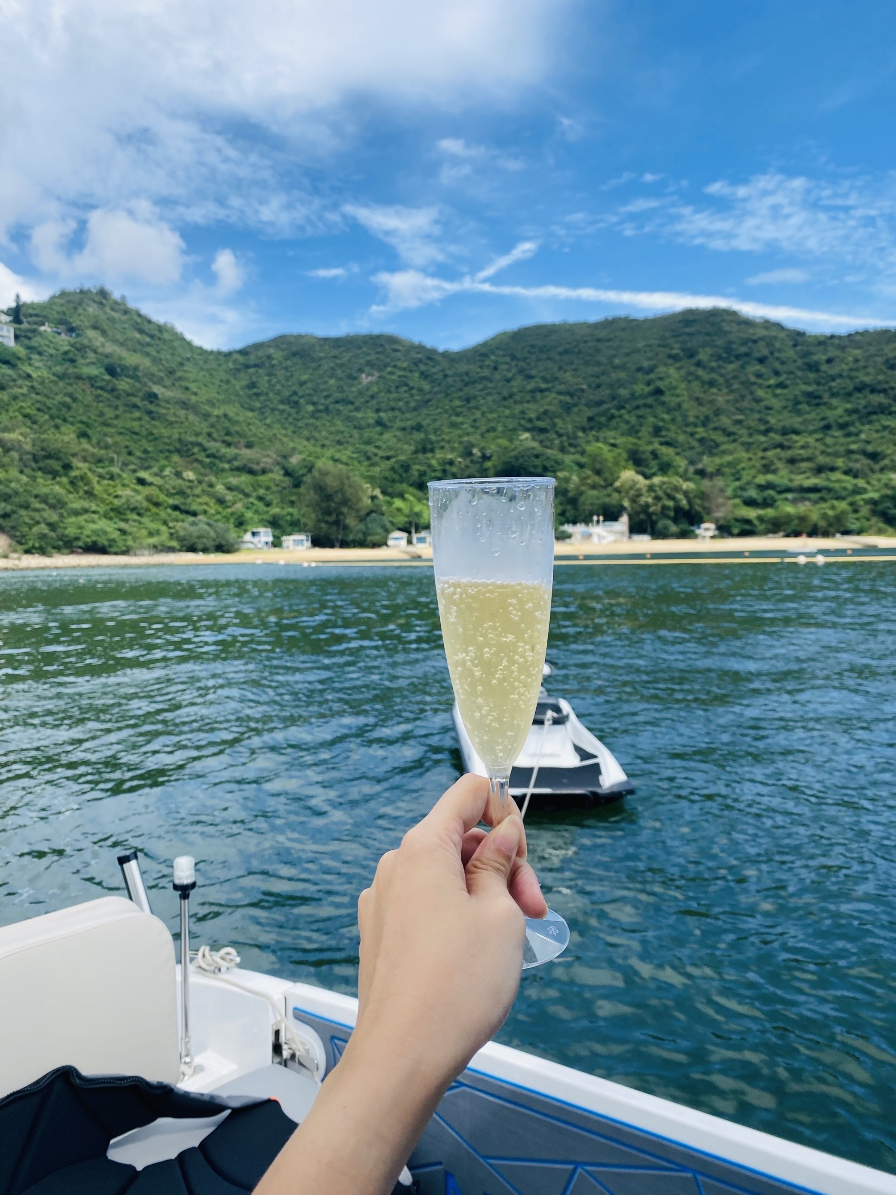 那天天氣不錯,陰天但是沒有下雨,沒有刺毒太陽的情況下玩這種水上玩具其實也挺享受的。我和夥伴一人一杯香檳,度過了一個很棒的下午。有些人可能以為要能夠玩到這種水上玩具,一定要有一艘很大的船才可以,但事實是,只要你的船載得了人和器具,找到一個平穩的水域就可以開始玩!就像這次我們搭28呎(大約9米)的小快艇出海,簡單的設備就行。